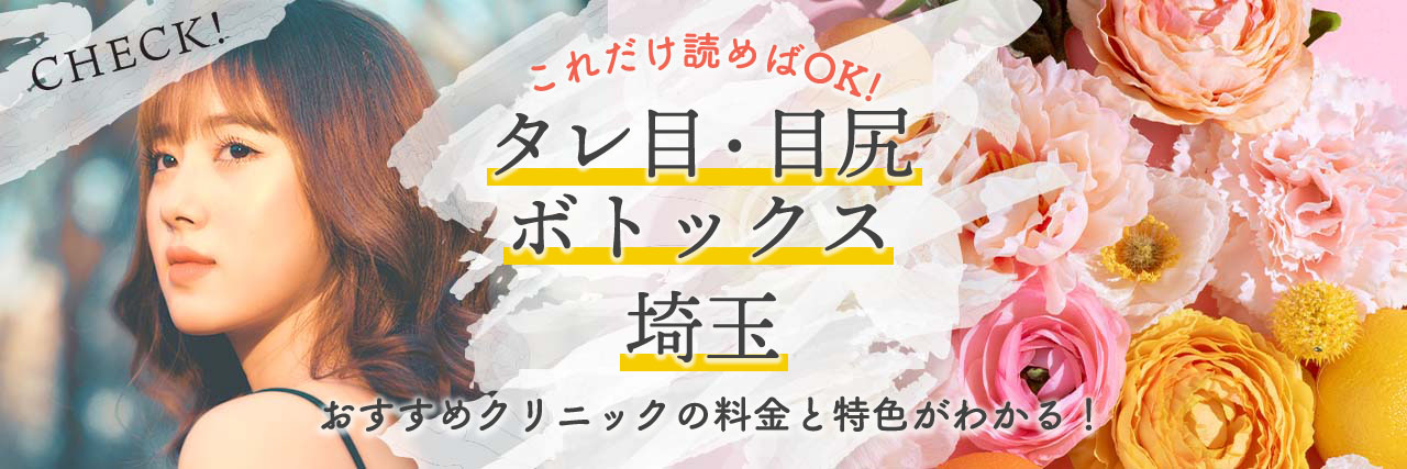 この記事では埼玉でタレ目形成(アーモンドアイ)もしくは目尻ボトックスが受けられるおすすめクリニックをまとめて紹介します。