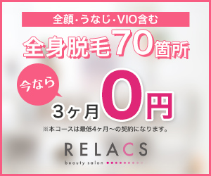 脇はもちろん、額から足の指先まで、全身70パーツを脱毛できるリラクス。「いつかは全身を脱毛したい!」という人にぴったり♡