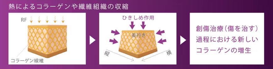 真皮層にはコラーゲンがたくさん含まれていて、高周波を照射することでコラーゲンの生成を促すことができるようです。その結果、コラーゲンが活性化されることで、肌を引き締める効果が期待できるんですね!