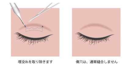 埋没法を受けてからあまり時間が経っていない場合は、もとのまぶたに戻る可能性があるようです。しかし時間が経ってからの抜糸は、糸の見つけにくさやまぶたの戻りにくさがあることが説明されています。