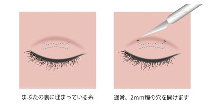 神戸ゆりクリニックの「他院糸抜き(埋没糸抜去術)」では、約2mmの穴を開けて埋没糸が取り除かれます。